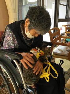 ワンちゃんやネコちゃんの癒しの力に引き寄せられ、「昔、家でも飼っていたのよ」「かわいいね」などと話しながら、