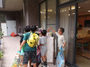 「どのお菓子の袋がいいかな♪」と楽しそうにお菓子の袋を選び、食堂にいる利用者の方々に「ありがとうございました」と笑顔で声をかけて帰っていきました。