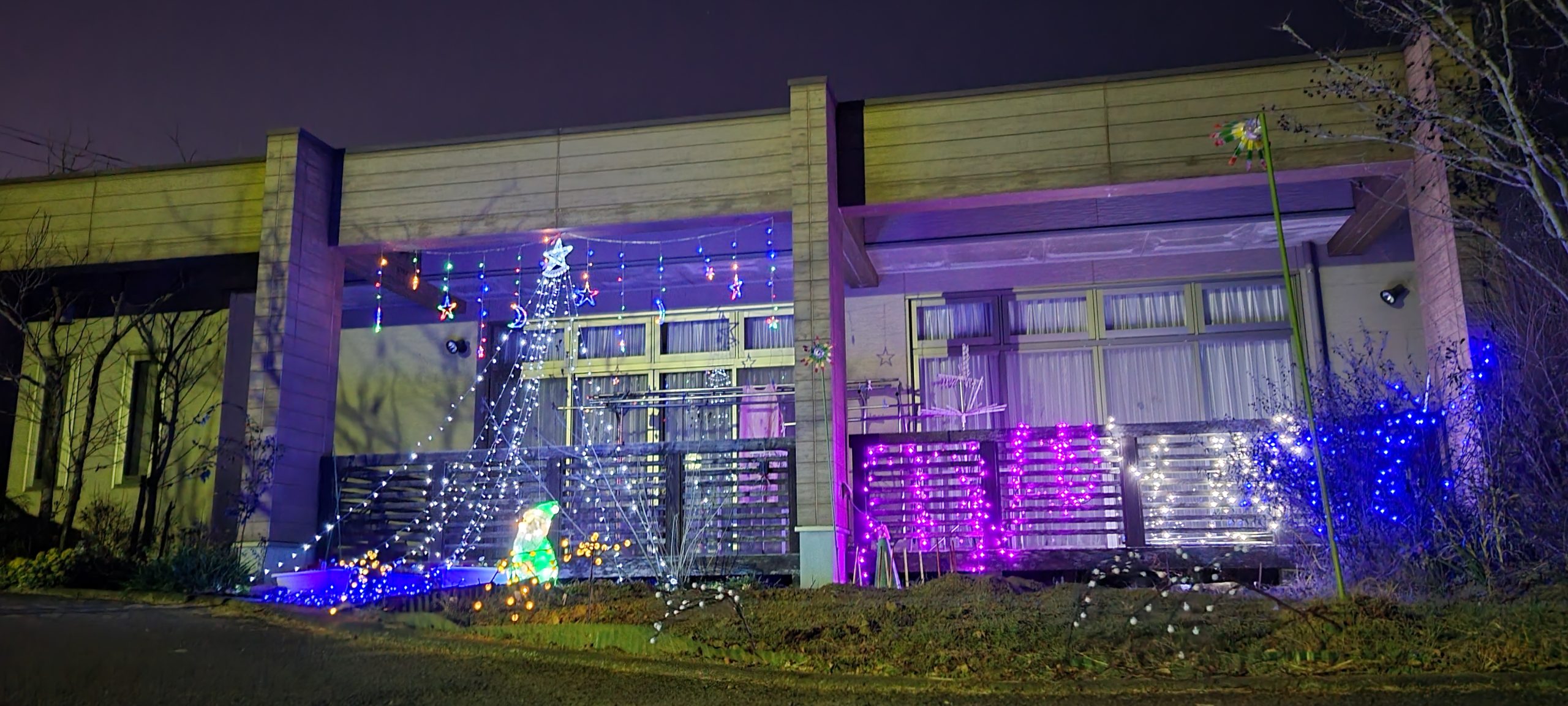 今年は、昨年よりも少しパワーアップしたイルミネーションが、あけぼの園の中庭や、ねむの里の玄関に登場しました。