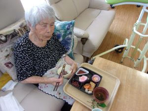 節目の傘寿(80歳)には2名の利用者様、米寿(88歳)も2名の利用者様、101歳の利用者様もおられます。これからも皆様が健やかに楽しく過ごされますように。