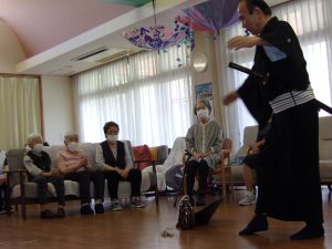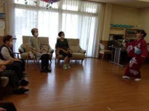 後藤 桂子代表「小波一明会」(日本舞踊)のボランティアの皆様が、敬老のお祝いに素敵な舞を披露してくださいました。