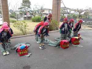 可愛い獅子舞に扮した木脇保育園の皆様が、ねむの里とあけぼの園に福を届けに来てくれました。