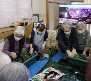「(花の間隔が)近いか?」などなど、皆さんでワイワイと楽しみながら、土いじりと花の植栽と行いました。