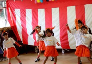 子どもたちのダンスや日本舞踊、山之口中学校吹奏楽部の演奏、カラオケ歌謡や紙芝居、チンドン屋など