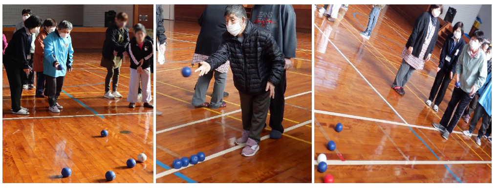 競技が始まると、利用者の皆様は集中しながらジャックボール目掛けてボールを投げていき、「そこだ!」「惜しい!」「やったー!すごい!」などと元気な声が飛び交い、投げるたびに笑顔が広がる、楽しい時間となりました。