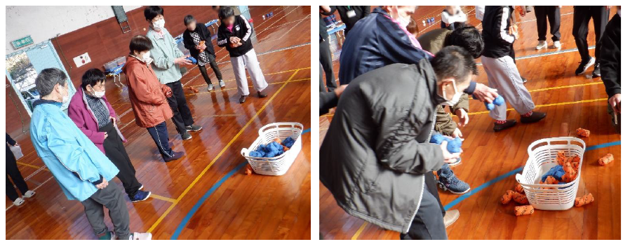 スタートとともに、利用者の皆様は一斉にかごに向かって玉を投げ入れ、あっという間に競技が終了しました。