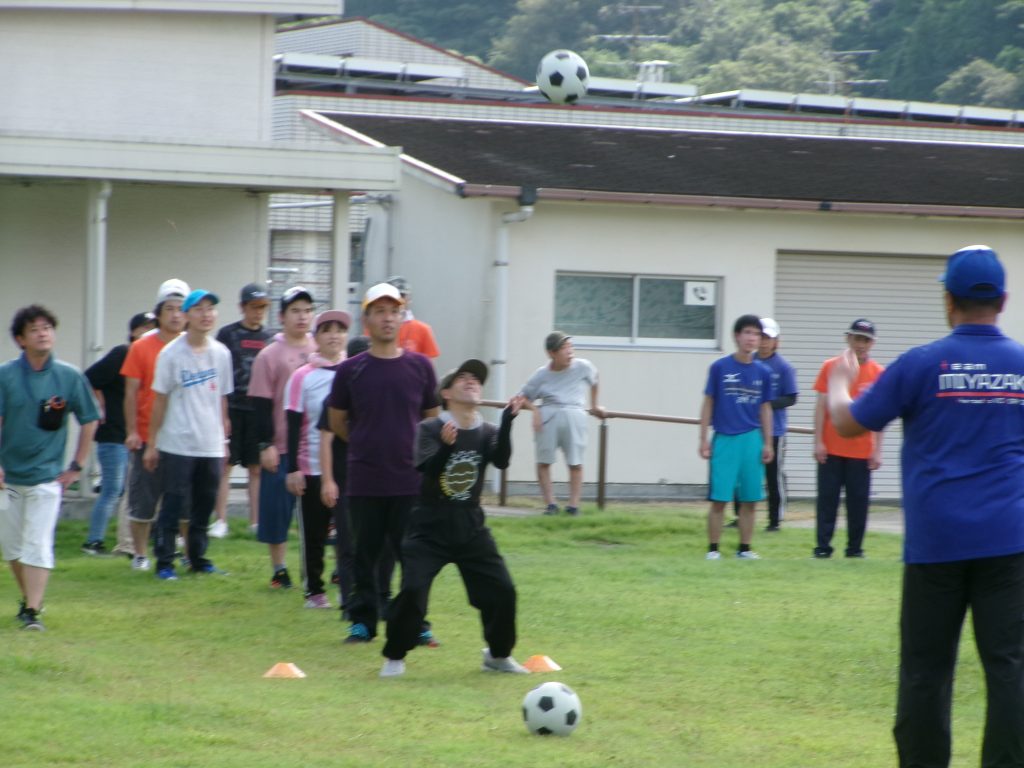 今回、宮崎県チームに所属される選手の皆様と一緒に、指導者の方に教わりながら、ボールのキャッチやキックの練習をし、最後は簡易のゲームにも参加させていただきました。