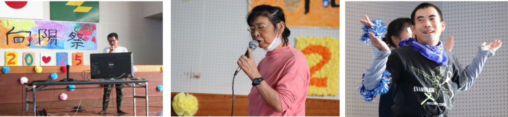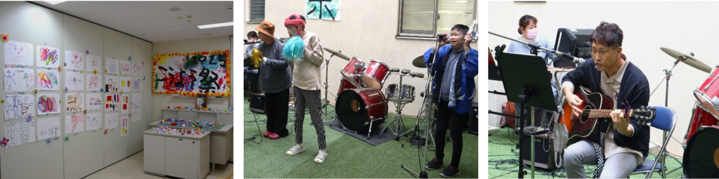 利用者の皆様による作品展示や、カラオケ・バンド演奏、職員による弾き語り演奏が披露され、大いに盛り上がりました。