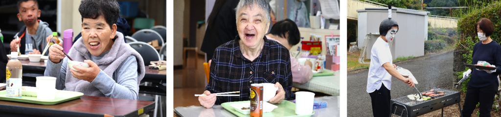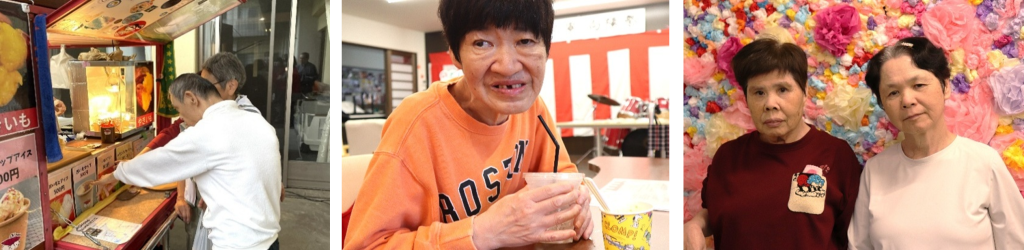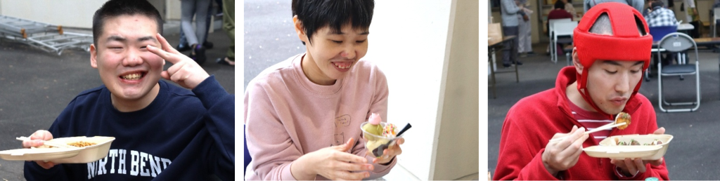 外では出来立てのカレーや焼きそば、たこ焼きが振る舞われ、利用者の皆様はとても嬉しそうに召し上がっていました。また、キッチンカーでは「oh!oimo」、「ぷらすわん」の方に来ていただき、利用者の皆様それぞれが食べたいデザートを頼まれ、ペロリと完食しておりました。