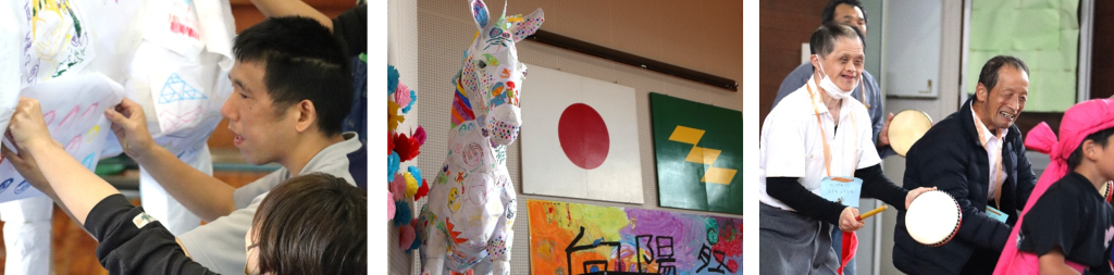 ボランティアの皆様方による、三味線・尺八演奏、エイサー、ワークショップ(来年の干支にちなんだ作品)を披露・実施していただきました。利用者の皆様も一緒に参加しながら楽しんでいました。