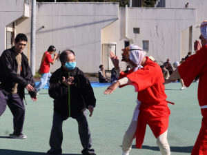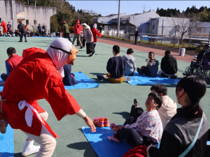 12月の家族会では、ご家族様のご提案と企画により、日向市から『手話っ知連とその仲間たち』の皆様が来訪され、ひょっとこ踊りを披露してくださいました。