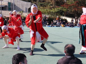 ひょっとこのユーモラスで神聖な踊りに、利用者様やご家族様から笑顔が見られ、大盛り上がりとなりました。一部では、ひょっとこのお面に驚かれる利用者様もいらっしゃいました。