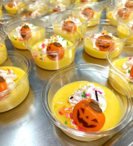 利用者の皆様に食事でもハロウィンを楽しんでもらおうと、ハロウィンデザートを手作りしました!