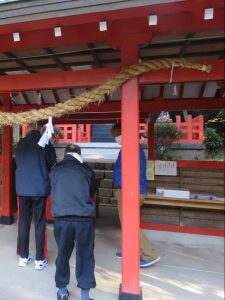神社に着くと、参道を歩き、手順に沿って参拝されました。